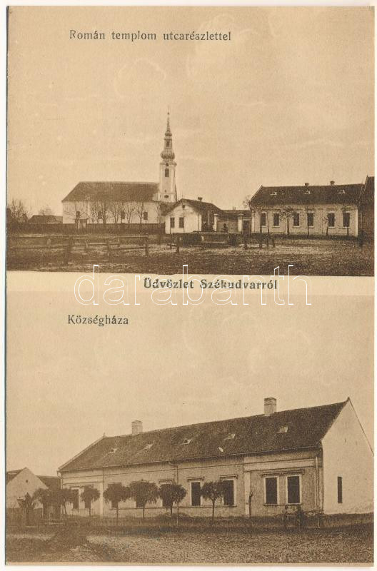 Székudvar, Socodor; Román templom, utcarészlet, községháza, Magyar Arc...
