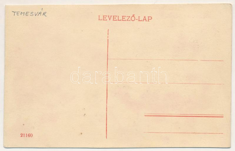 Temesvár, Timisoara; Belváros, Szent György tér, Farber Miksa, Szeibert Péter, Klein, Berger Ármin üzlete, Országos Korona Takarékpénztár, villamos, Áruház az angol szabóhoz. Kiadja Gerő Manó / square, shops, savings bank, tram (vágott / cut)