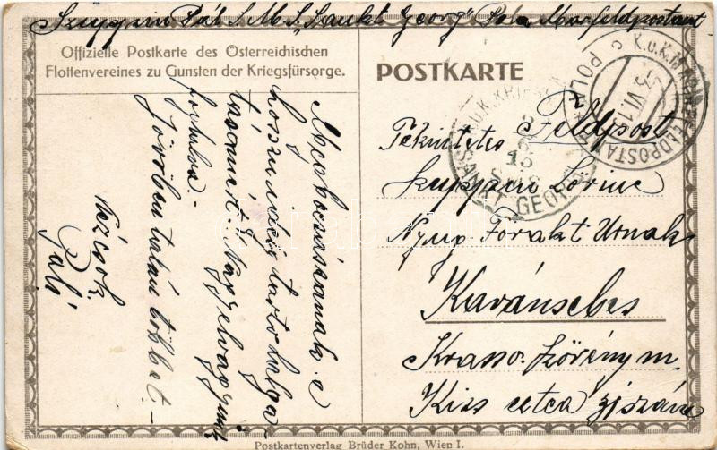 1915 Unterseeboot U XII greift die französische Hochseflotte in der Otrantostrasse an. Offizielle Postkarte des Österr. Flottenvereines zugunsten der Kriegsfürsorge - K.u.K. Kriegsmarine. Brüder Kohn Wien I. / Austro Hungarian U-12 submarine with French Navy fleet in the battle of Otranto s: Harry Heusser + "K.U.K. KMARINE FELDPOSTAMT POLA" (EB)