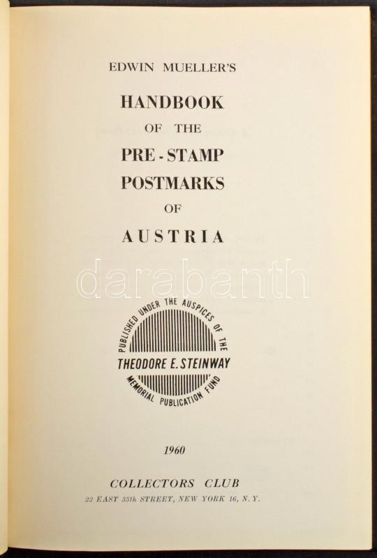 https://www.darabanth.com/en/514-Auction-philately-postcards-numismatics-artwork-books-colletibles-jewelry/515.0/Selected-Hungarian-items-and-collections/Catalogues-bibliography~14/Edwin-Muellers-Handbook-of-the-pre-stamp-postmarks-of-Austria-1960~II3421262