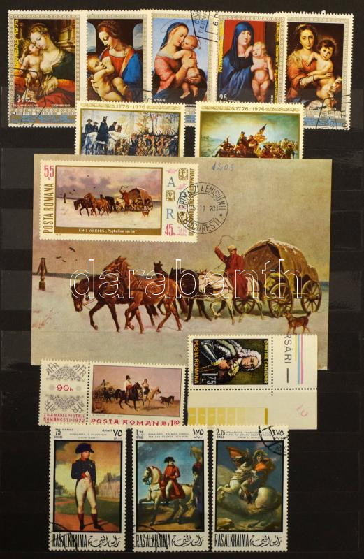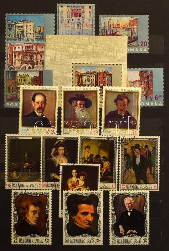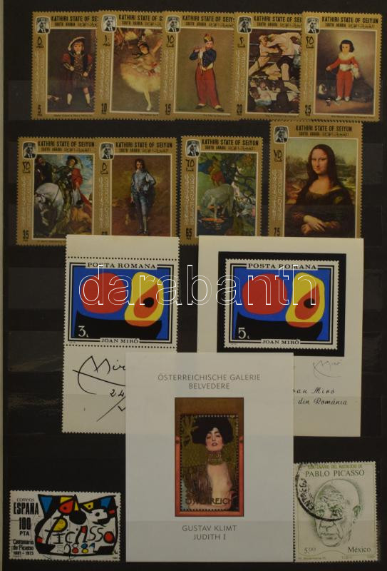Festmény motívum 257 db bélyeg, sorokkal, sok ívszélivel + 19 db blokk, jó minőségű 8 lapos A/4 Philux berakóban