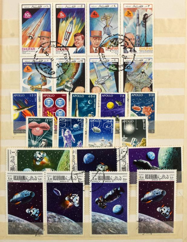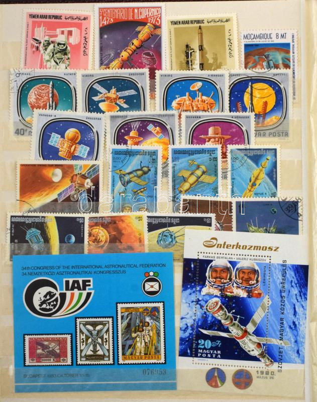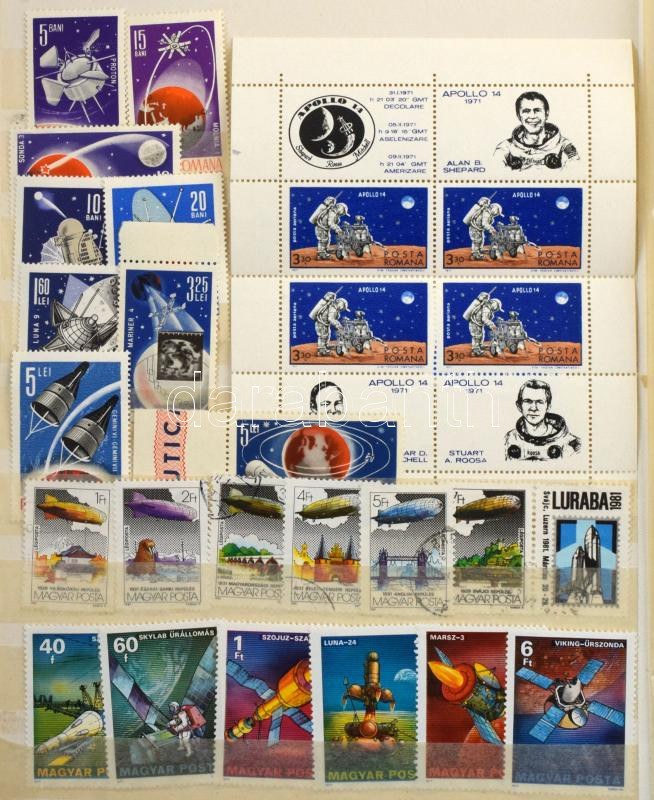 Űrkutatás, űrrepülés, repülés motívum 315 db klf bélyeg, sorok + 26 db blokk és kisív, 10 lapos közepes Unigersum berakóban