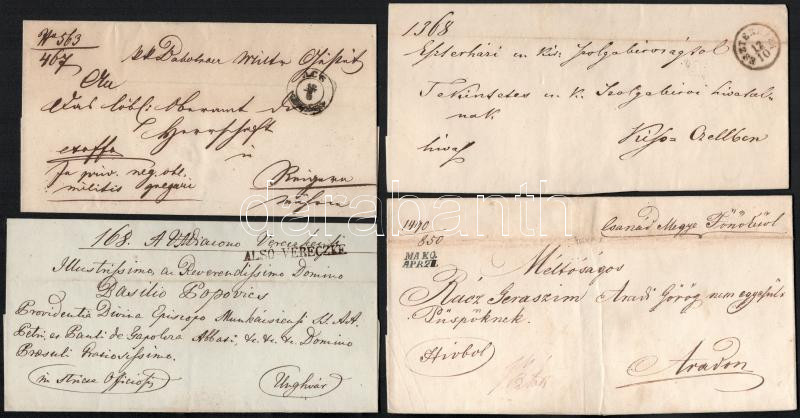 1847-1859 4 db levél "ALSÓ-VERECZKE", "MAKÓ", "ÁCS", "ESZTERHÁZA" bélyegzésekkel
