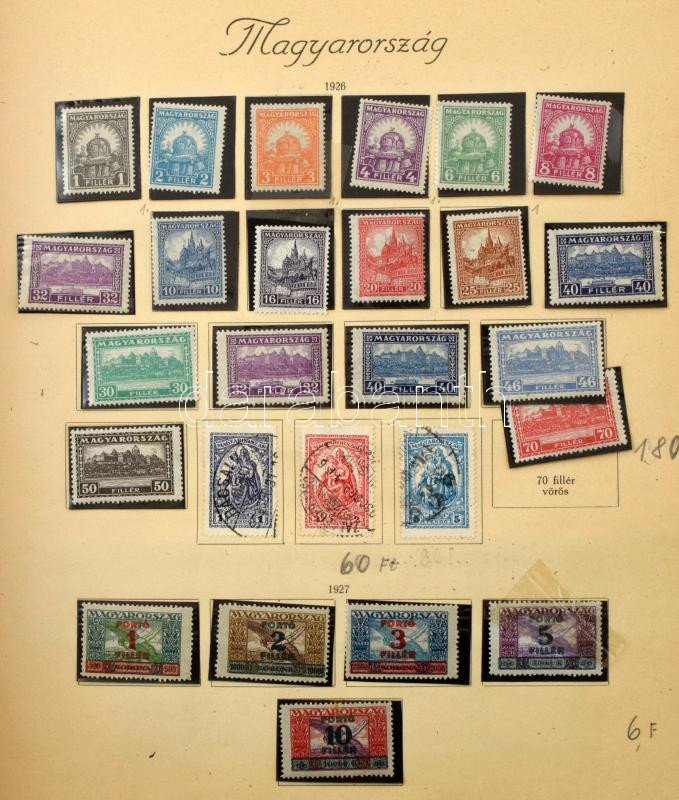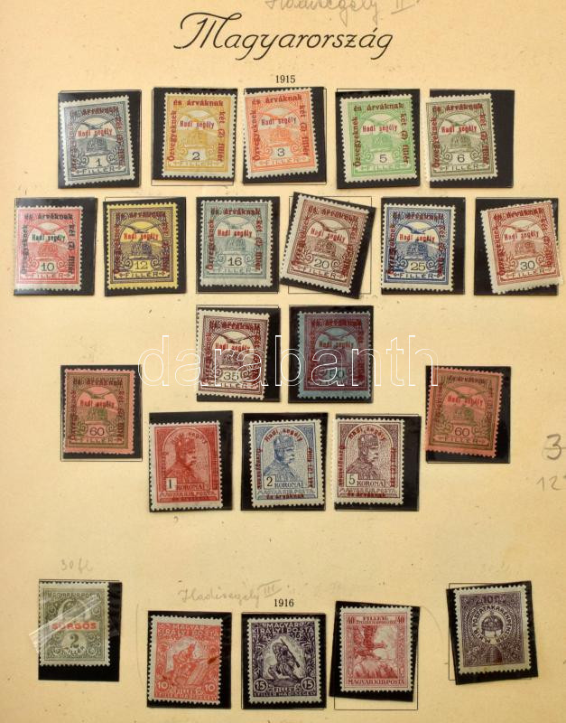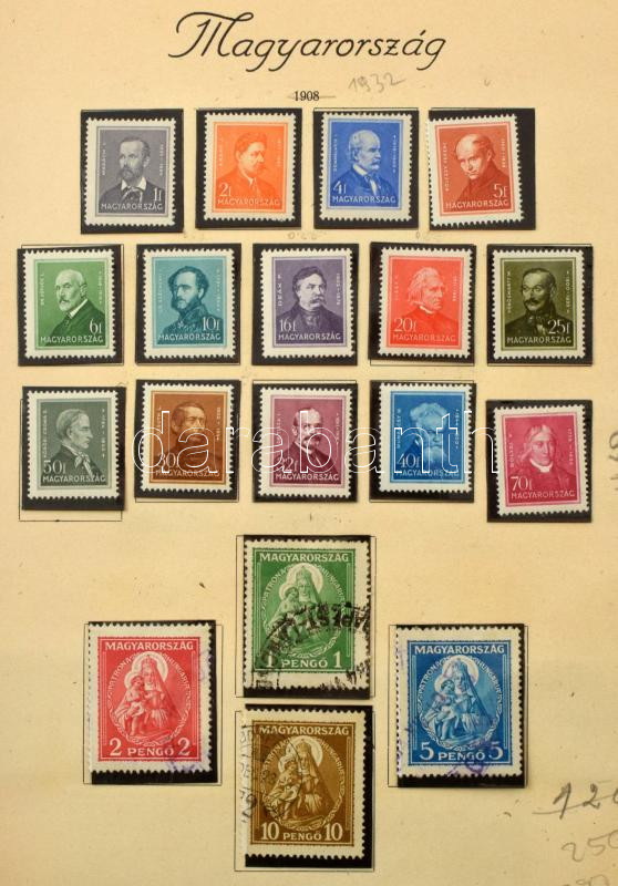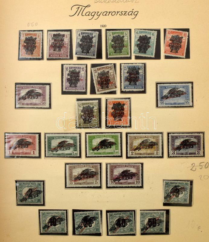 1850-1944 Nem teljes, de tartalmas gyűjtemény sorokkal, néhány blokkal és kisívvel, kis hármas lyukasztás résszel, régi Turul albumban (régi katalógus ár szerint számolva ~ 180.000.-)