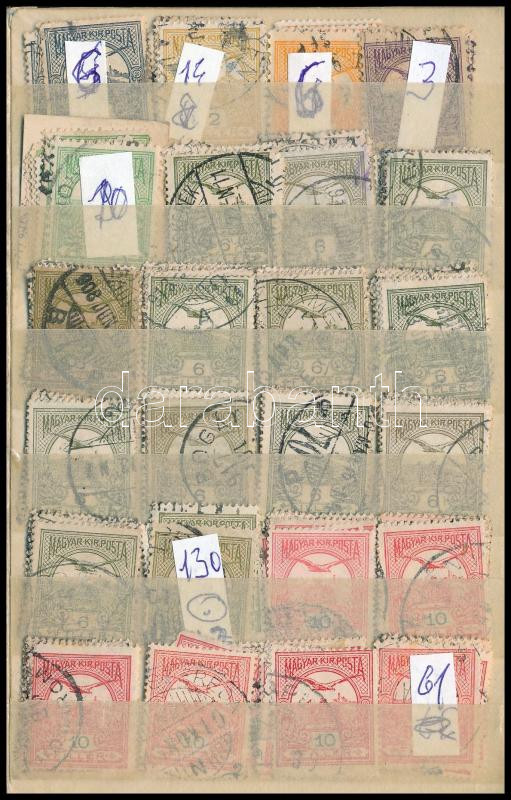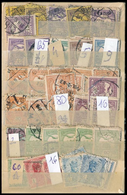 1900-1913 506 db Turul bélyeg címletenként rendezve, fogazatra és vízjelre beazonosítás nélkül