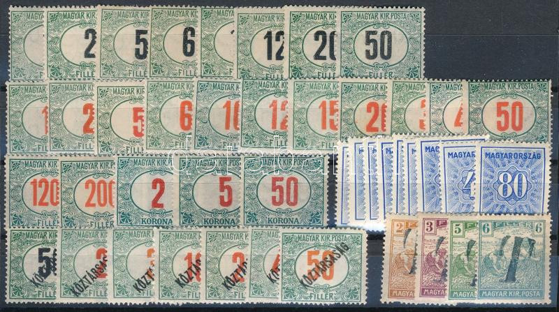 1914-1934 4 klf portó sor, a Kékportó hiányos + 4 db szükségportó bélyeg