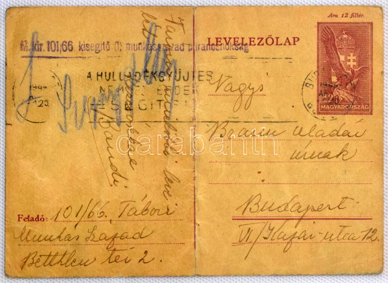 1940-1944 19 db munkaszolgálatos küldemény / 19 covers, postcards to / from Jewish Labor Service