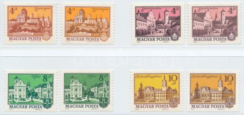 1973-1980 Tájak városok 4Ft, 4Ft, 8Ft, 10Ft értékei utánnyomással, az eredetitől eltérő színben, együtt ritka kínálat!