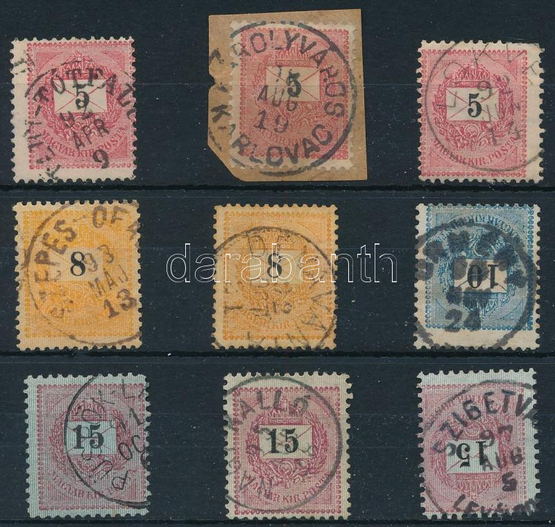 9 db Krajcáros bélyeg szép / olvasható bélyegzésekkel (összesen 360 Gudlin pont értékben)