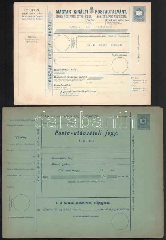 93 db magyar 10kr díjjegyes használatlan postautalvány, 2 féle