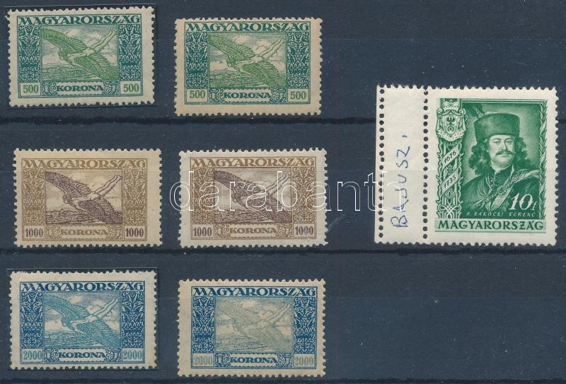 Ikarusz bélyeg színváltozatok 6 db + Rákóczi Ferenc 10f hiányos bajusz lemezhibával és kettős fogazással