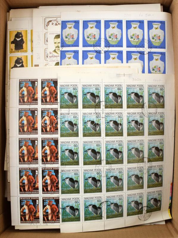 Több száz modern magyar hajtott teljes ív vagy ívdarab, dobozban