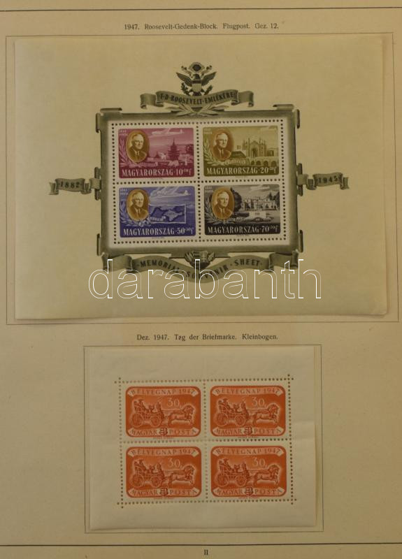 1871-1968 Tartalmas magyar gyűjtemény sorokkal, blokkokkal , nagyon sok jó kiadással előnyomott albumlapokon + tartalmas gyűjtemény maradvány 1871-től előnyomott lapokon, régi rugós borítóban. Magas katalógus értékű, szépen kezelt anyag!! Érdemes megnézni!!