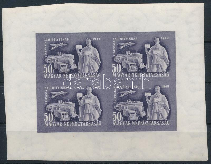 https://www.darabanth.com/en/514-Auction-philately-postcards-numismatics-artwork-books-colletibles-jewelry/515.0/Selected-Hungarian-items-and-collections/Imperforate-sets-blocks-at-a-very-low-starting-price~2/1949-Belyegnap-vagott-kisiv-100000~II3451549