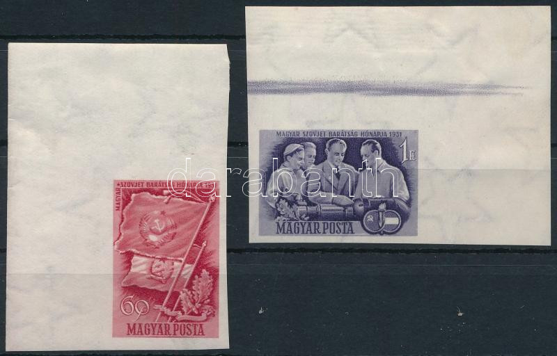 https://www.darabanth.com/en/514-Auction-philately-postcards-numismatics-artwork-books-colletibles-jewelry/515.0/Selected-Hungarian-items-and-collections/Imperforate-sets-blocks-at-a-very-low-starting-price~2/1951-Magyar-szovjet-baratsag-vagott-ivsarki-sor-luxus-minosegben-9000~II3483253
