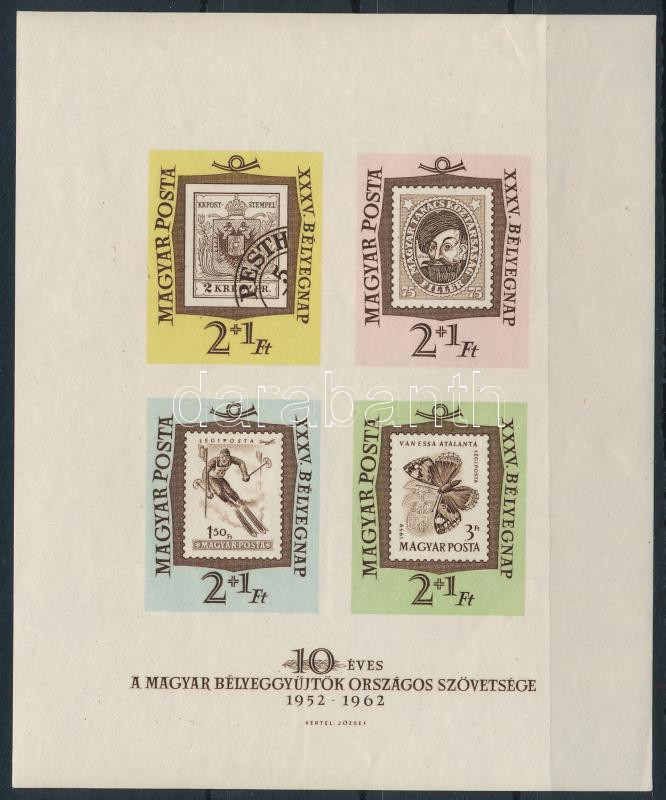https://www.darabanth.com/en/514-Auction-philately-postcards-numismatics-artwork-books-colletibles-jewelry/515.0/Selected-Hungarian-items-and-collections/Imperforate-sets-blocks-at-a-very-low-starting-price~2/1962-Belyegnap-vagott-blokk-8000~II3483473