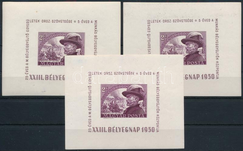 1950 Bélyegnap - Bem 3 db blokk (45.000) (foltok a képoldalon / spots)