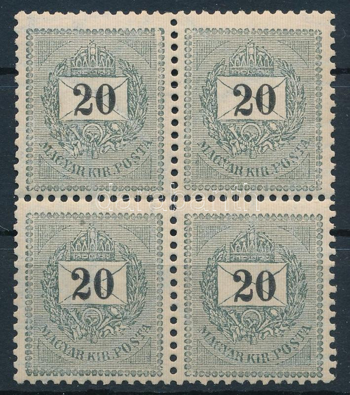 1898 20kr négyestömb lemezösszefüggés, nagyon ritka, egyik legritkább ...
