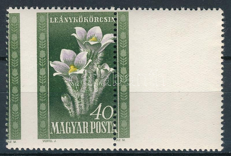 https://www.darabanth.com/en/514-Auction-philately-postcards-numismatics-artwork-books-colletibles-jewelry/515.0/Selected-Hungarian-items-and-collections/Single-hungarian-issues-at-a-very-low-starting-price~1/1950-Virag-I-40f-jobb-oldali-ures-mezovel-latvanyosan-elfogazva~II3479791