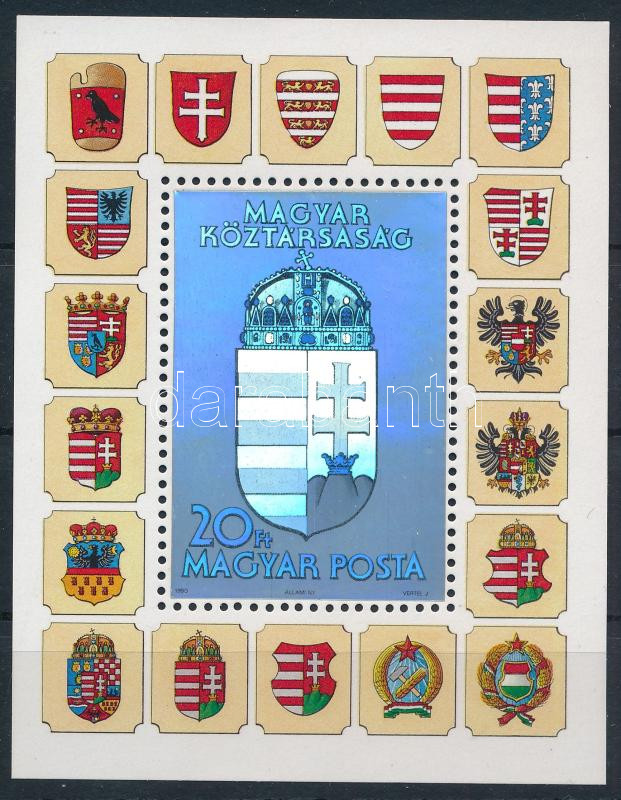 1991 A Magyar Köztársaság címere (II.) hologramos blokk piros sorszámm...
