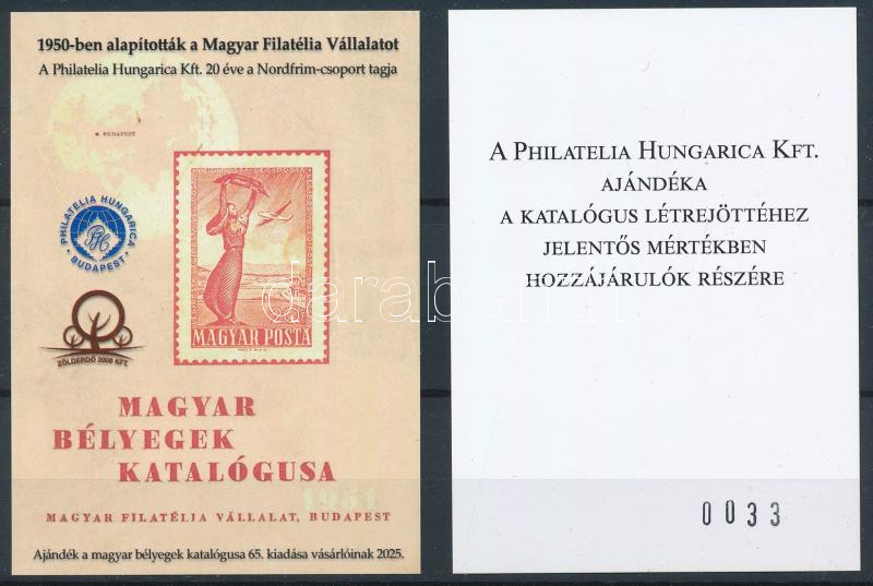 2025 A magyar bélyegek katalógusa emlékívpár, ajándék a katalógus létrejöttéhez jelentős mértékben hozzájárulók részére. Csak 50 példány létezik!