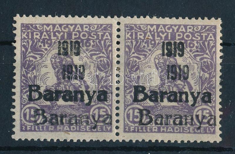 Baranya I. 1919 Hadisegély III. 15f pár kettős felülnyomással, Bodor v...