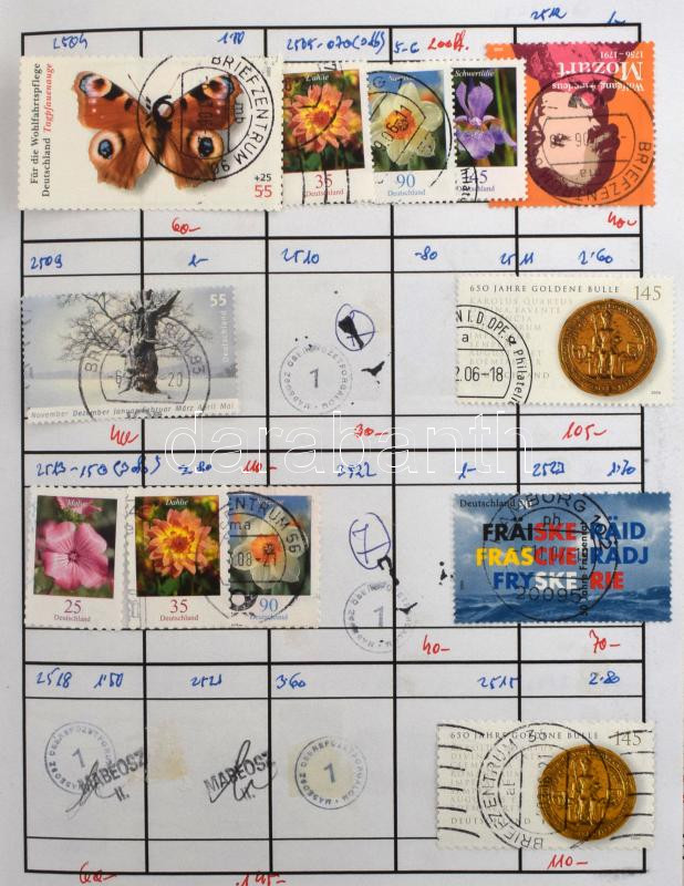 36 db nagyobb méretű lefutott cserefüzet benne főleg európai, javarészt német bélyegek