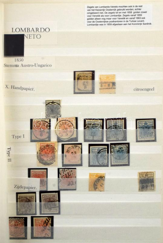 Ausztria Lombard Velence kis speciál gyűjtemény / small specialised collection on stockcard pages