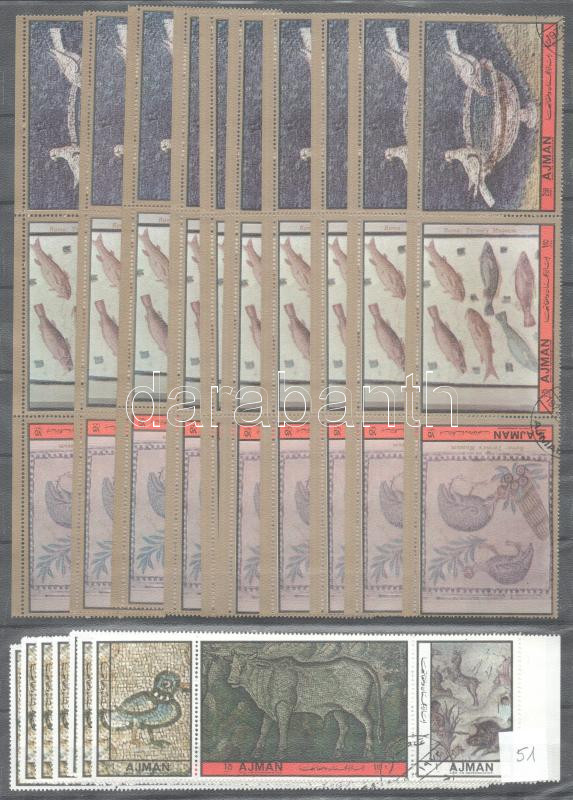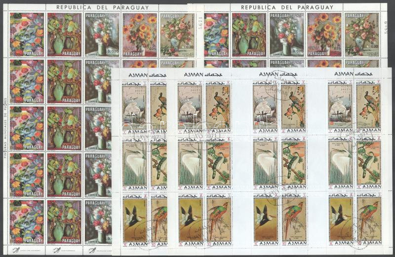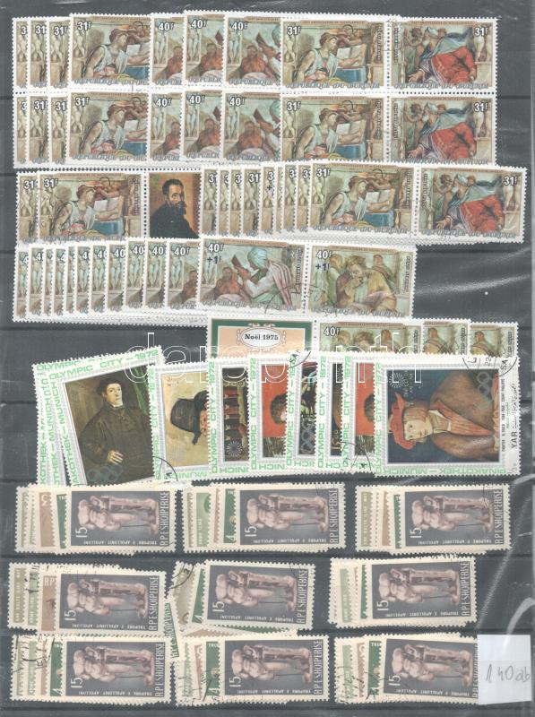 Festmény motívum tétel, kereskedői hagyaték, benne 357 db bélyeg + 4 ív, 3 db A/4 berakólapon