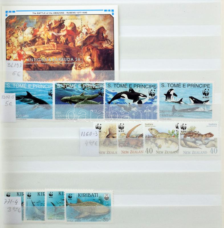 Külföldi főleg motívum sorok, blokkok tétel maradéka, 30 lapos, jó állapotú A/4-es berakóban. Szép anyag sok tengerentúlival, újabb kiadásokkal (Mi EUR 1.200.-)