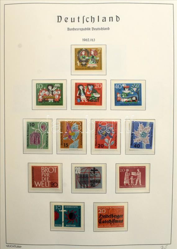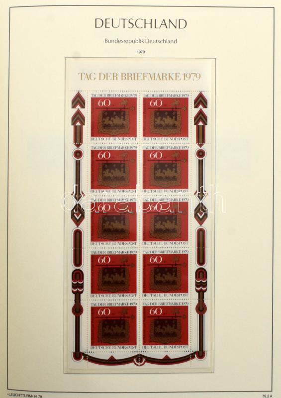 NSZK 1960-1987 komplett postatiszta gyűjtemény Leuchtturm falcmentes előnyomott albumban, rugós piros borítóval (Mi EUR 1.100,-)