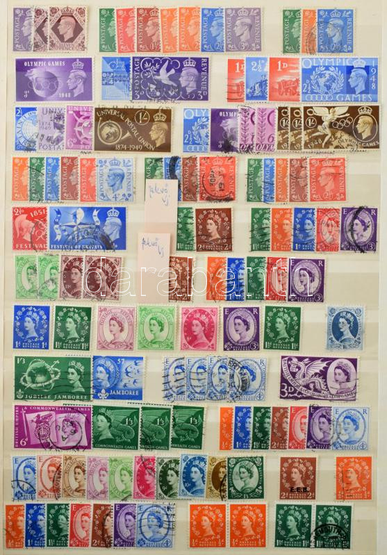 Nagy-Britannia kb 3.000 db bélyeg kevés klasszikussal, főleg 1960 utáni anyag sok egyformával 16 lapos A/4 berakóban