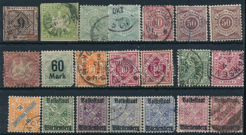 Német államok - Württemberg 21 db bélyeg stecklapon