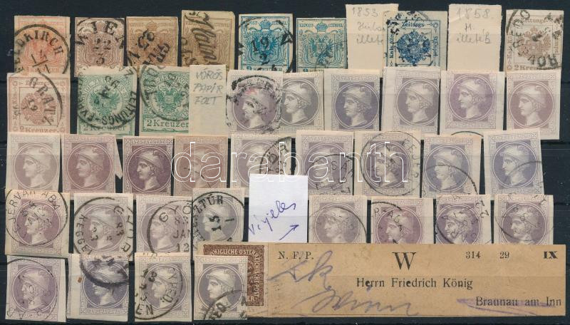 Osztrák klasszikus összeállítás, főként hírlapbélyegek és illetékbélye...