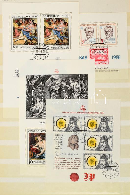 Szlovákia, Csehszlovákia javarészt pecsételt gyűjtemény 16 lapos A4-es berakóban, benne sorok, kisívek