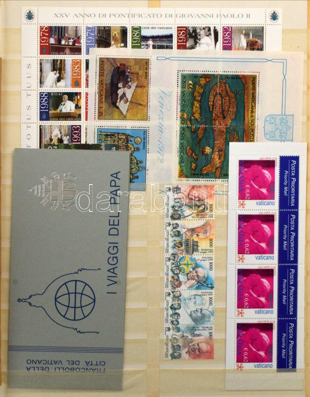 Vatikán kis tétel, sorok, blokkok, kisívek, bélyegfüzetek 4 nagy Schaubek berakólapon / Small lot, sets, blocks, minisheets, stamp booklets on 4 double sided pages