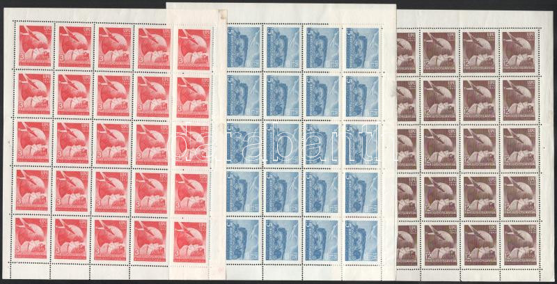 1949 UPU sor Mi 578-580 25-ös rteljes ívekben (sérülések a kereten / faults on margins)