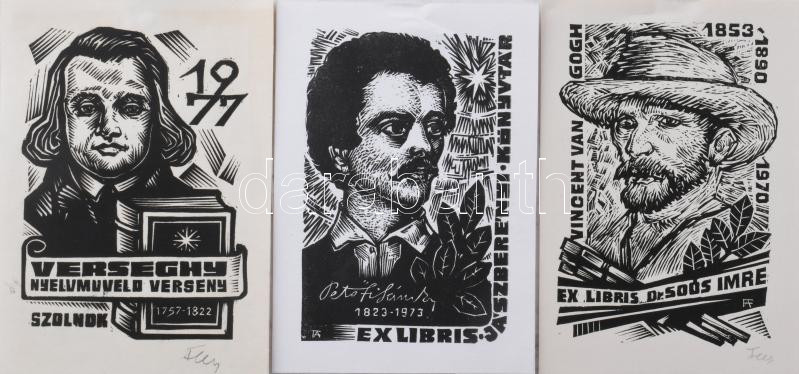 Description: Fery Antal (1908-1994): 30 db ex libris és kisgrafika híres emberek ábrázolásával (Bartók Béla, Juhász Gyula, Petőfi Sándor, Kós Károly, stb.). Klf. technikák, papír, több ceruzával jelzett, klf. méretekben.