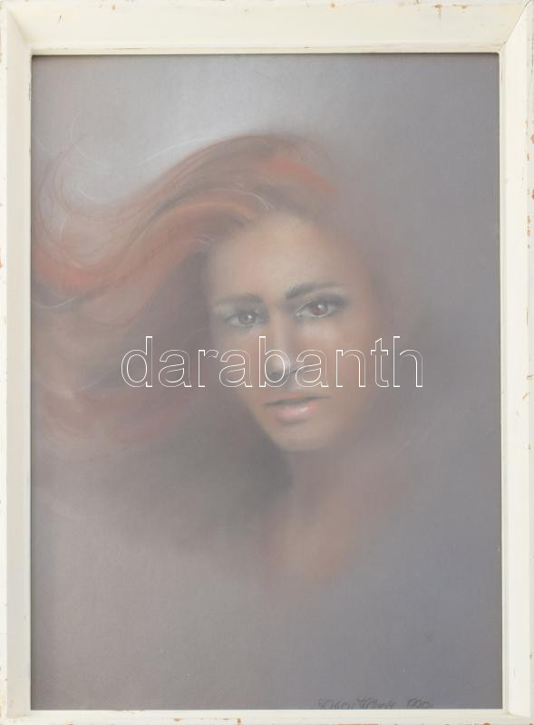Farkas Károly jelzéssel: Vöröshajú lány, 1990. Pasztell, papír. Üvegez...