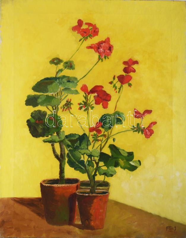 Farkas S. jelzéssel: Muskátli, 1909. Olaj, vászon. Proveniencia: Saphier-gyűjtemény. Javított. Sérült. 75x60 cm.