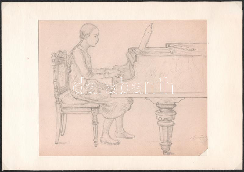 Glatz jelzéssel (Glatz Oszkár vagy fia, Henrik?): Kislány a zongoránál. Ceruza, papír. Paszpartuban. Jobb oldalán vágott. 17×21,5 cm.