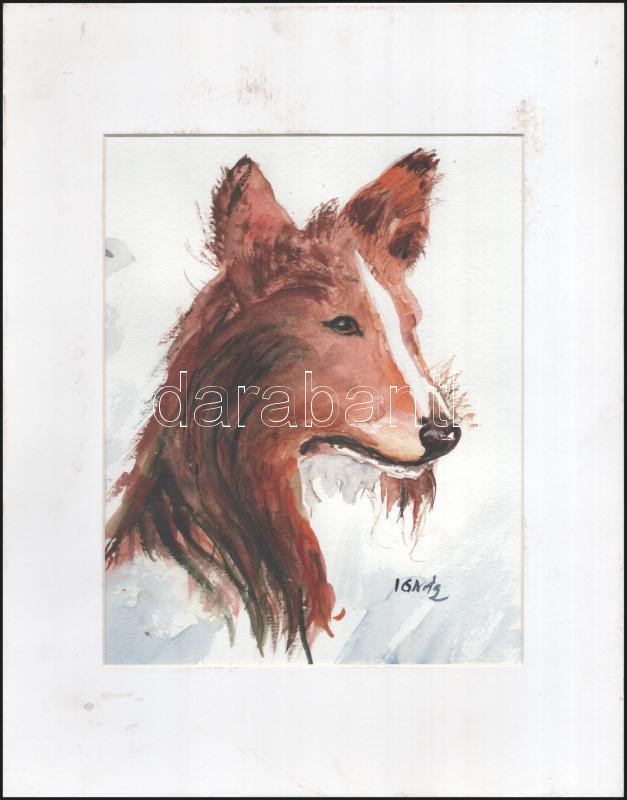 Ignác (?) jelzéssel: Kutya portré. Akvarell, papír. P,aszpartuban. 24x...