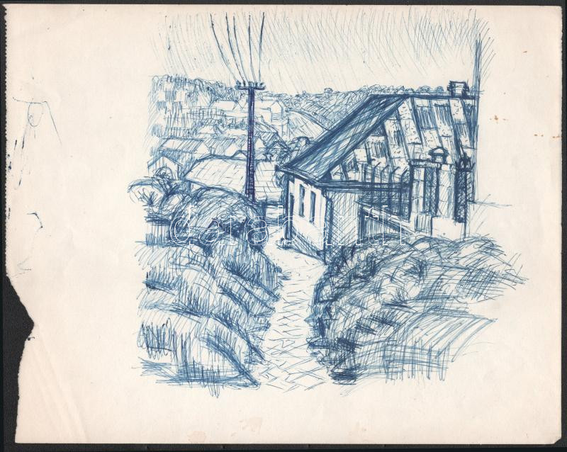 Jelzés nélkül (Barta István?): Utcarészlet. Golyóstoll, papír, lap széle sérült és kissé foltos, 24x30,5 cm