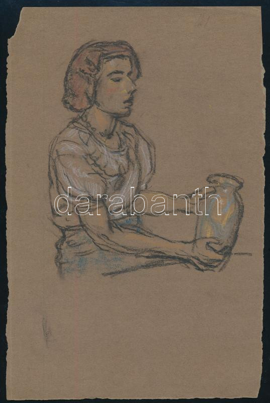 Jelzés nélkül: Lány korsóval. Pasztell, papír, lap széle kissé sérült, 25x16,5 cm