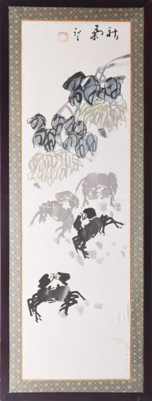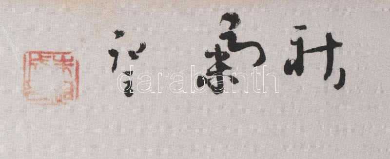 Jelzés nélkül, feltehetően távol-keleti alkotó: Rákok. Akvarell, selyem. Kissé foltos. Dekoratív, fém veretekkel díszített fakeretben. 78,5x24 cm