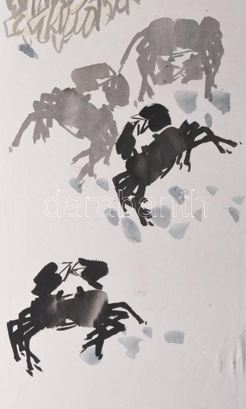 Jelzés nélkül, feltehetően távol-keleti alkotó: Rákok. Akvarell, selye...