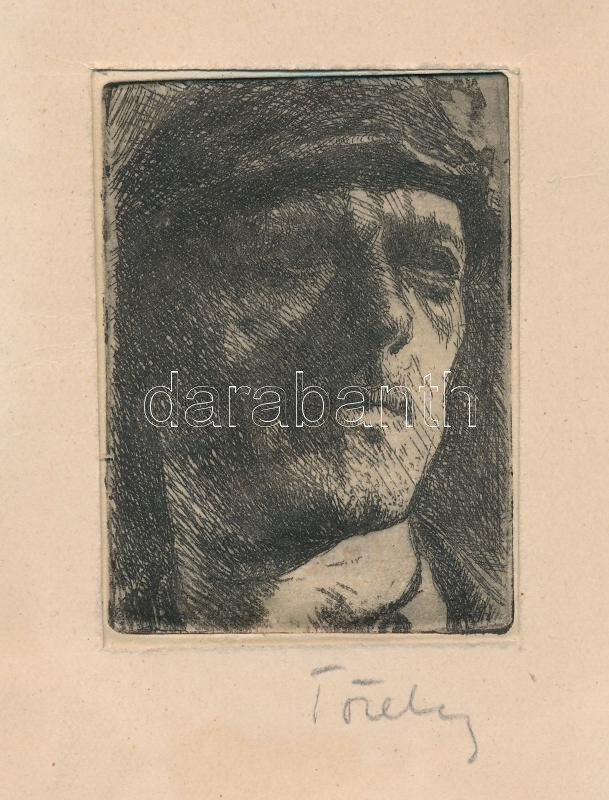 Olvashatatlan (Töreky?) jelzéssel: Expresszív arckép. Rézkarc, papír, ...