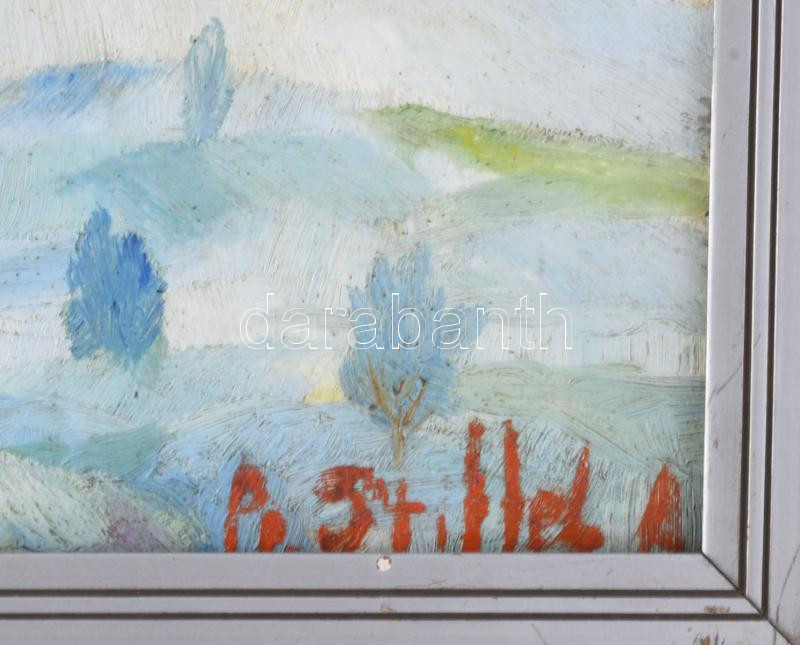 Olvashatatlan jelzéssel, XX. sz. első fele: Színes táj. Olaj, fa. Háto...