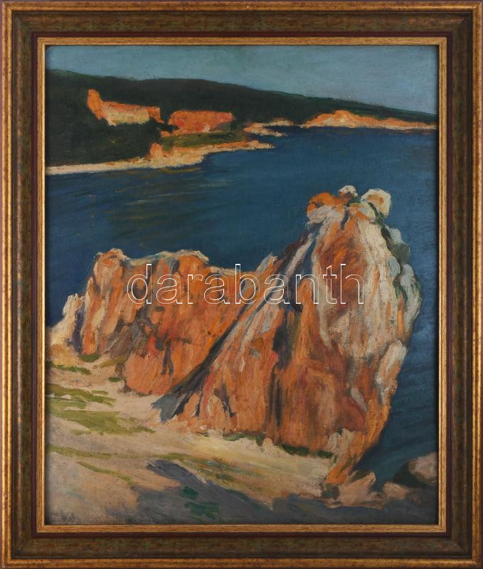 Olvashatatlan jelzéssel (balra lent), feltehetően XX. sz. első fele: S... https://www.darabanth.com/en/514-Paintings-posters-ex-libris-auction/516.0/Paintings-and-graphics/Paintings-and-graphics-quot-signedquot-or-quot-without-signquot-~5/Olvashatatlan-jelzessel-balra-lent-feltehetoen-XX-sz-elso-fele-Sziklas-tengerpart-Olaj-k~II3483434