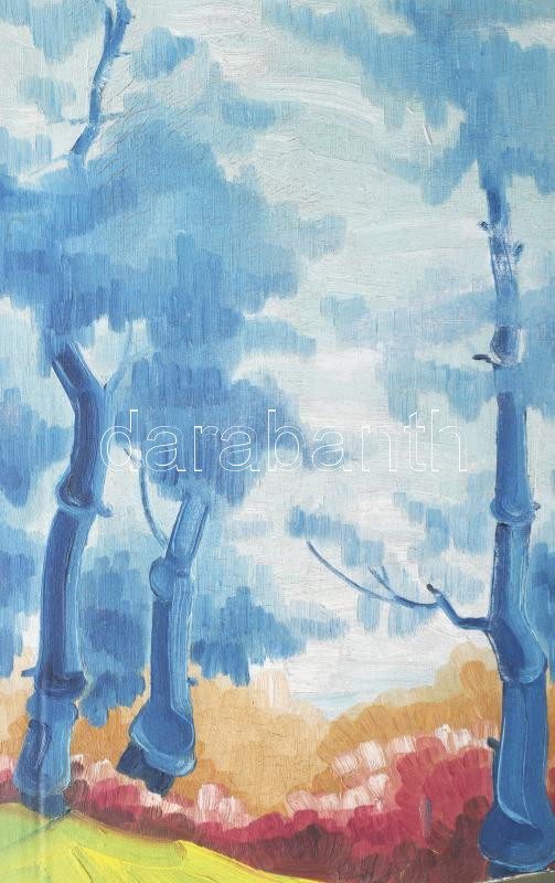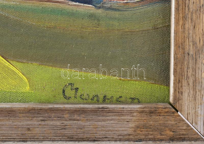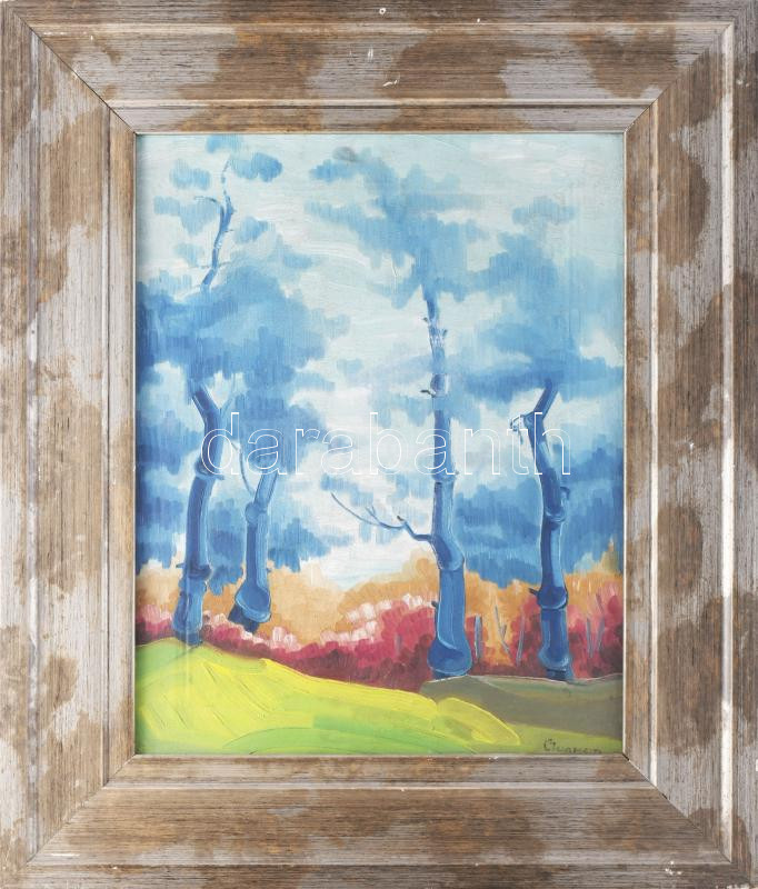 Olvashatatlan jelzéssel, feltehetően orosz v. szovjet festő: Színes táj. Olaj, vászon. Dekoratív fakeretben, 47x37 cm